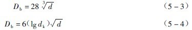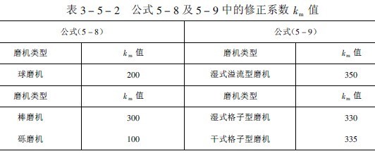 式(5-2)不能直接使用,必須針對特定礦石作兩組試驗,列出兩個方程式成一組,從方程組求解出i及n才能得出特定的球徑方程式,方可應用。為了方便應用,K.A拉蘇莫夫提出,對中硬礦石可以直接使用下面的簡便計算式計算Db(mm)