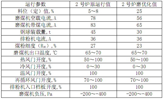 表1 制粉系統(tǒng)優(yōu)化運行參數